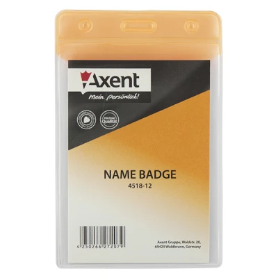 Бейдж “Axent” вертикальний помаранчевий 98*67мм