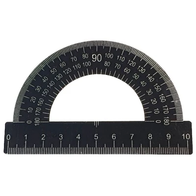 Транспортир Атлас виготовлений з металу та надрукований дуже стійкою до стирання фарбою. Кожен виріб у пакеті