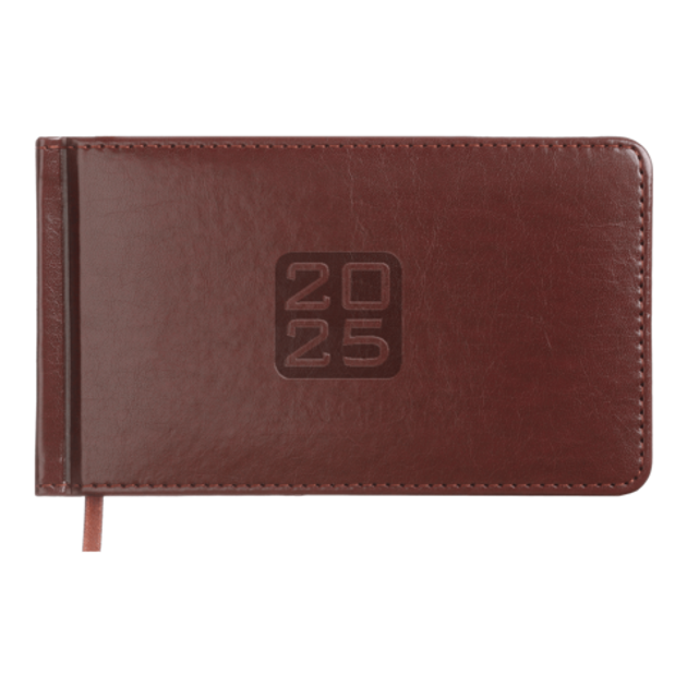 Тверда обкладинка щотижневика BRAVO виготовлена з гладкої штучної шкіри, з поролоном. На лицьовій стороні – тиснення року сліпим методом. Тонування зрізу золотом додає вишуканий акцент. Класичний та стриманий дизайн стане відмінним доповненням корпоративного стилю компанії. Кишеньковий розмір щотижневика робить його постійним супутником свого власника, він не займе багато місця навіть у маленькій сумці, може вміститися в кишеню і завжди буде під рукою.